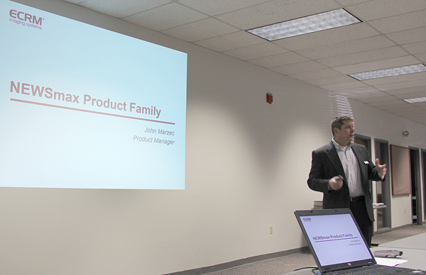 «Линейка новых высокоскоростных ECRM NEWSmax – это небольшие габариты, надежный фиолетовый лазер 120 мВт, высокий запас прочности и наращиваемый уровень производительности от 100 до 400 пл./час. Решение может удовлетворить требования любых газетных типографий при весьма небольших инвестициях», начал свой доклад Джон Марчек (John Marzec), директор по продукт-менеджменту ECRM Imaging Systems. «В сочетании с растрированием DM Screening, которое при разрешении 1270 dpi дает практически журнальное качество печати системы NEWSmax будут обладать очевидными преимуществами перед конкурентами».